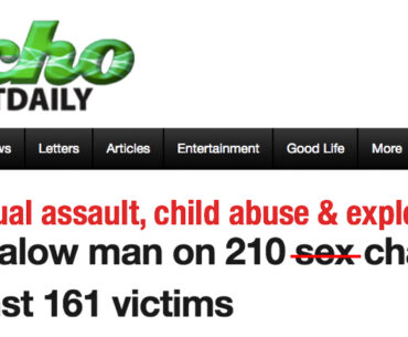 Habits die hard and victim-blaming attitudes are stubbornly persistent. Change is slow, but it is happening. I don’t see nearly as many “scorned lovers” or “good blokes” kill their partners and children. They’ve (mostly) stopped describing men who sexually abuse children has having “sexual relationships” with their victims.