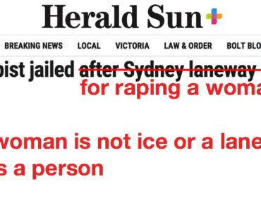 Habits die hard and victim-blaming attitudes are stubbornly persistent. Change is slow, but it is happening. I don’t see nearly as many “scorned lovers” or “good blokes” kill their partners and children. They’ve (mostly) stopped describing men who sexually abuse children has having “sexual relationships” with their victims.