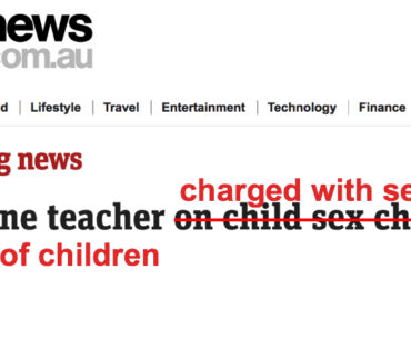 Habits die hard and victim-blaming attitudes are stubbornly persistent. Change is slow, but it is happening. I don’t see nearly as many “scorned lovers” or “good blokes” kill their partners and children. They’ve (mostly) stopped describing men who sexually abuse children has having “sexual relationships” with their victims.
